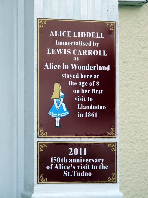 En la época victoriana, Llandudno era un popular balneario. Entre sus turistas más conocidos se encontraban Henry George Liddell y su familia, en particular su segunda hija Alice Liddell, quien fue la niña que inspiró el personaje de Alicia. Alice veraneaba en esta localidad con su familia durante la década de 1860. Su padre era un decano influyente en la Universidad de Oxford, y se hospedaban en lo que hoy se conoce como el Hotel St. Tudno (ahora llamado Wildings Hotel & Tudno’s Restaurant), que aún rinde homenaje a su ilustre huésped por medio de una lamina informativa a la entrada que recuerda la estadía de Alice y su familia.